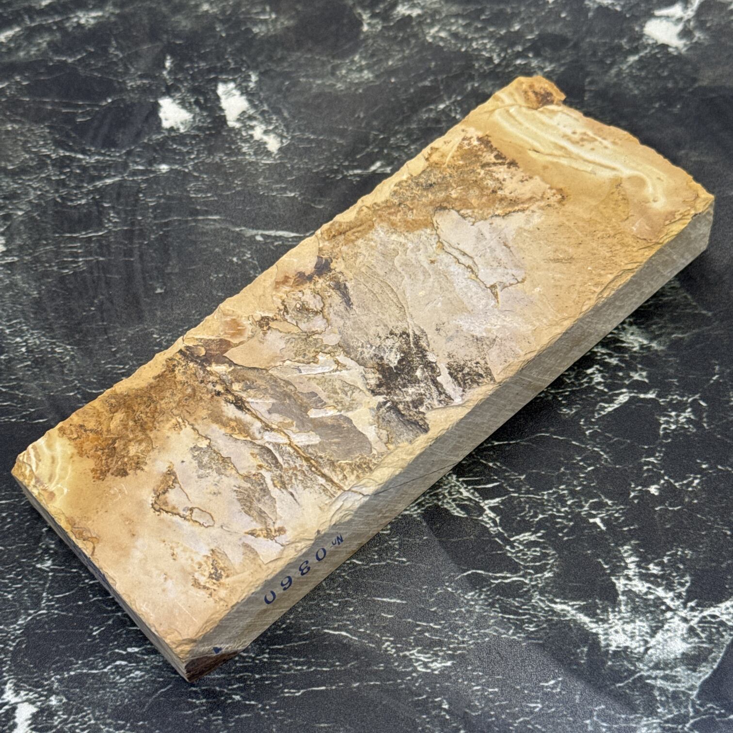 地殻変動の影響から京都のごく一部の地域でのみ産出する粘板岩の仕上げ砥です。
