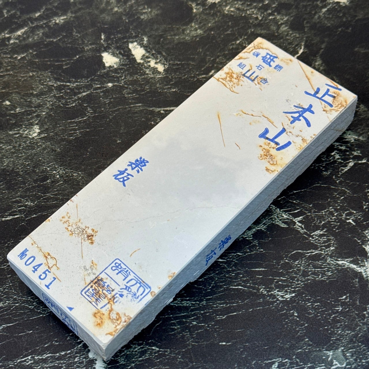 梅ケ畑地域の廃業した砥石屋から譲り受けた原石にて製造。出所不明で梅ケ畑産ではなさそうな感じ、愛宕あたりの原石とみられます。