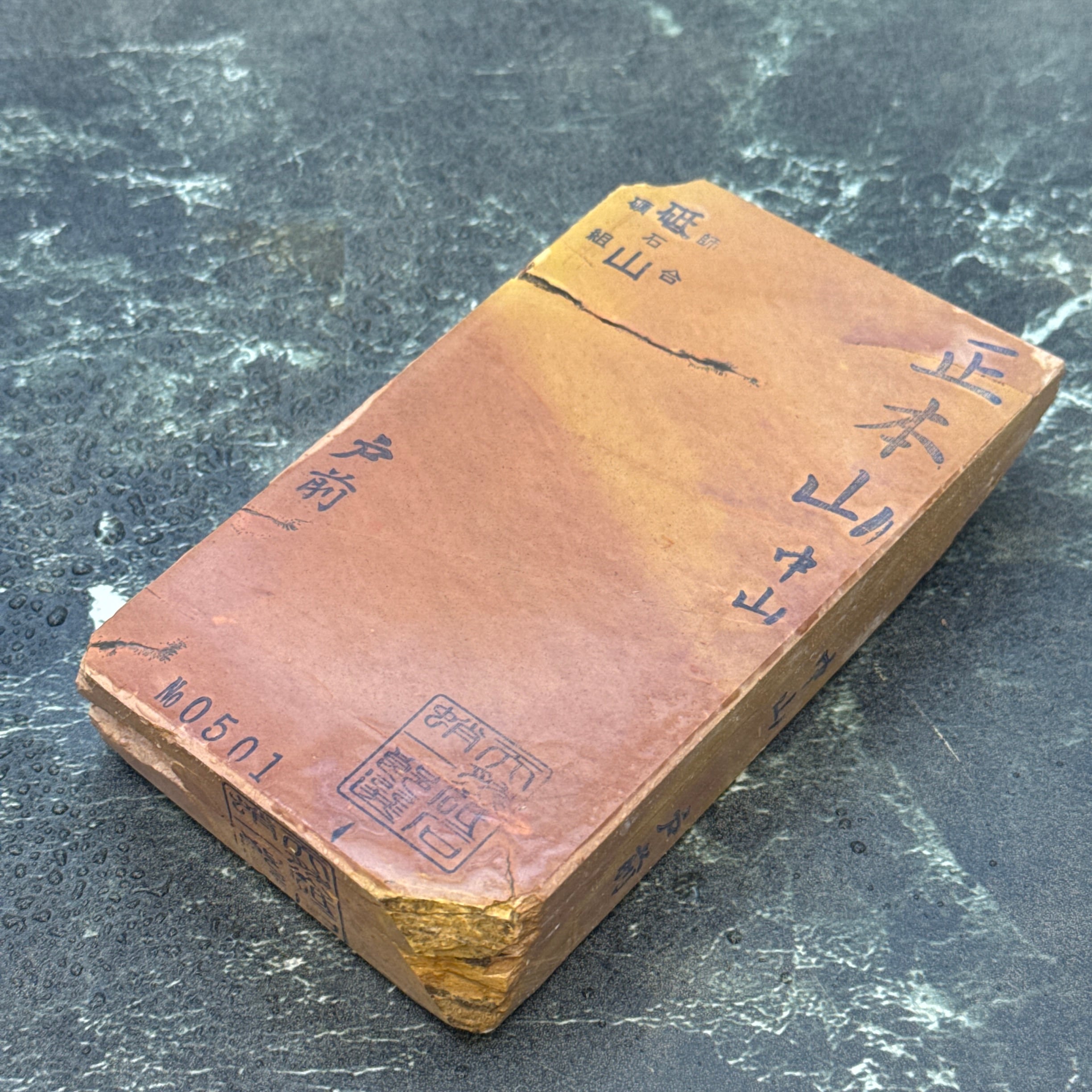 天然砥石 中世中山 戸前赤ピン レザー 528g No.501