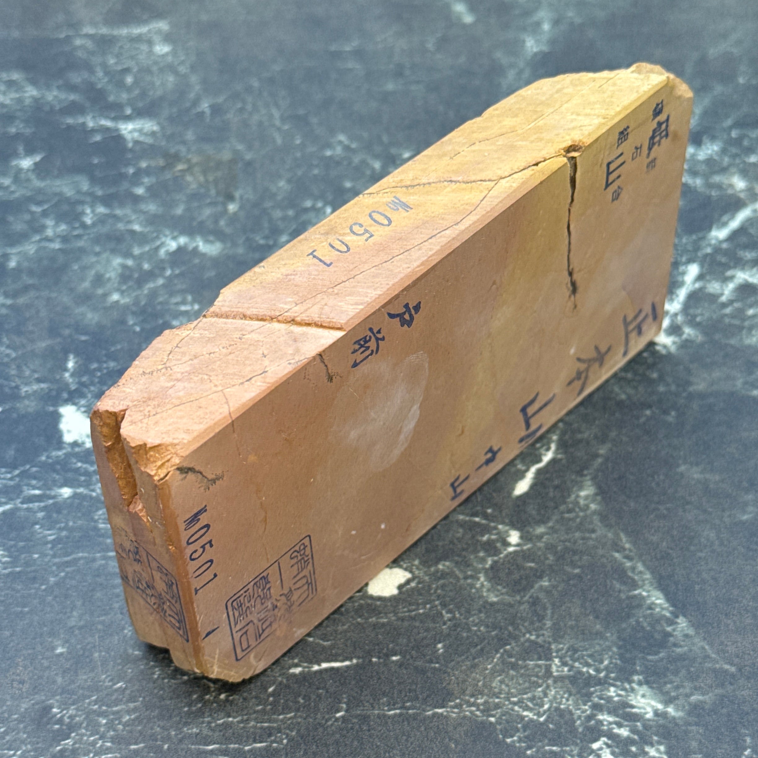 地殻変動の影響から京都のごく一部の地域でのみ産出する粘板岩の仕上げ砥です。