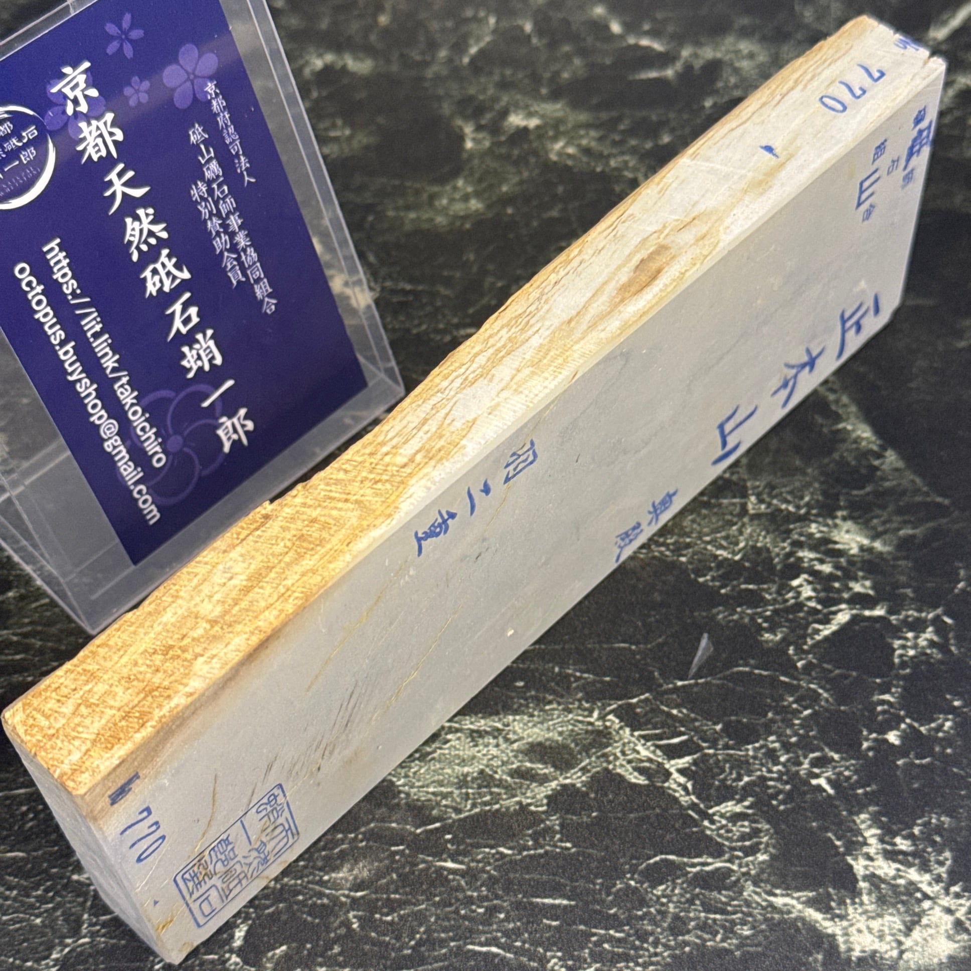 地殻変動の影響から京都のごく一部の地域でのみ産出する粘板岩の仕上げ砥です。