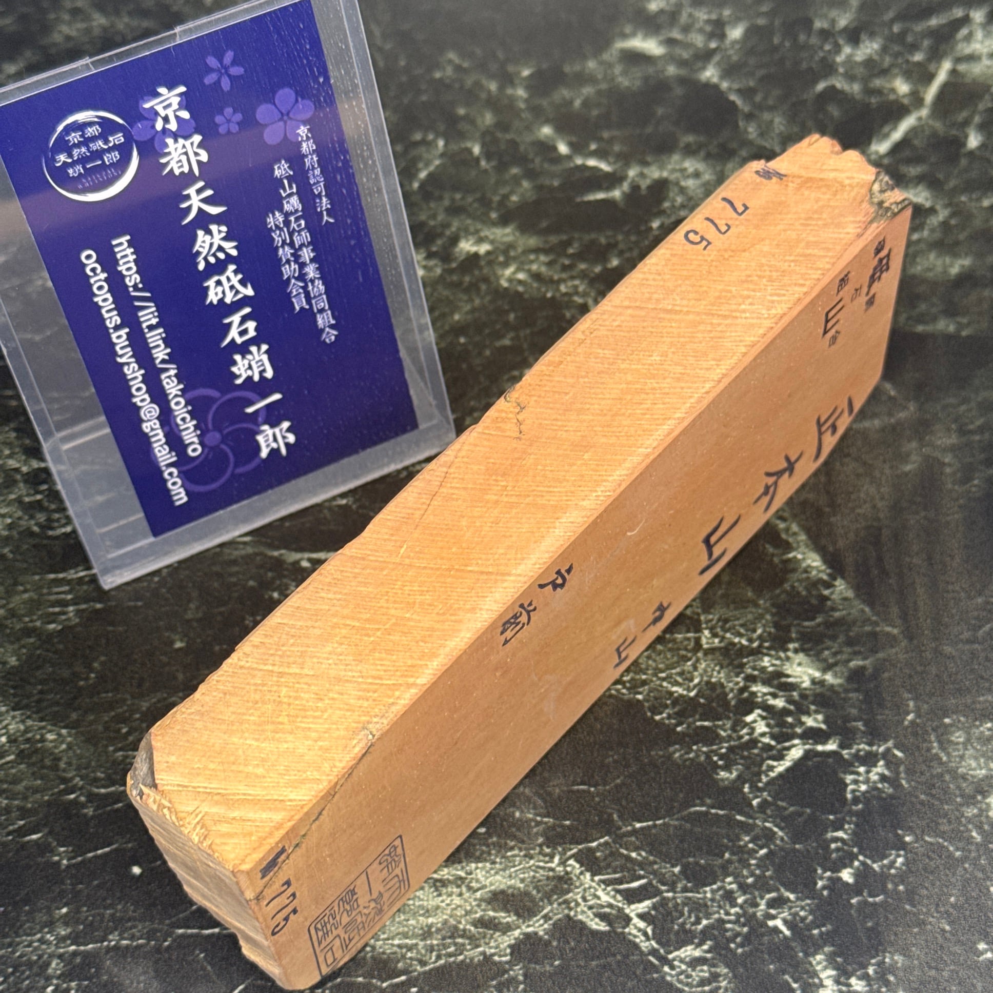 地殻変動の影響から京都のごく一部の地域でのみ産出する粘板岩の仕上げ砥です。