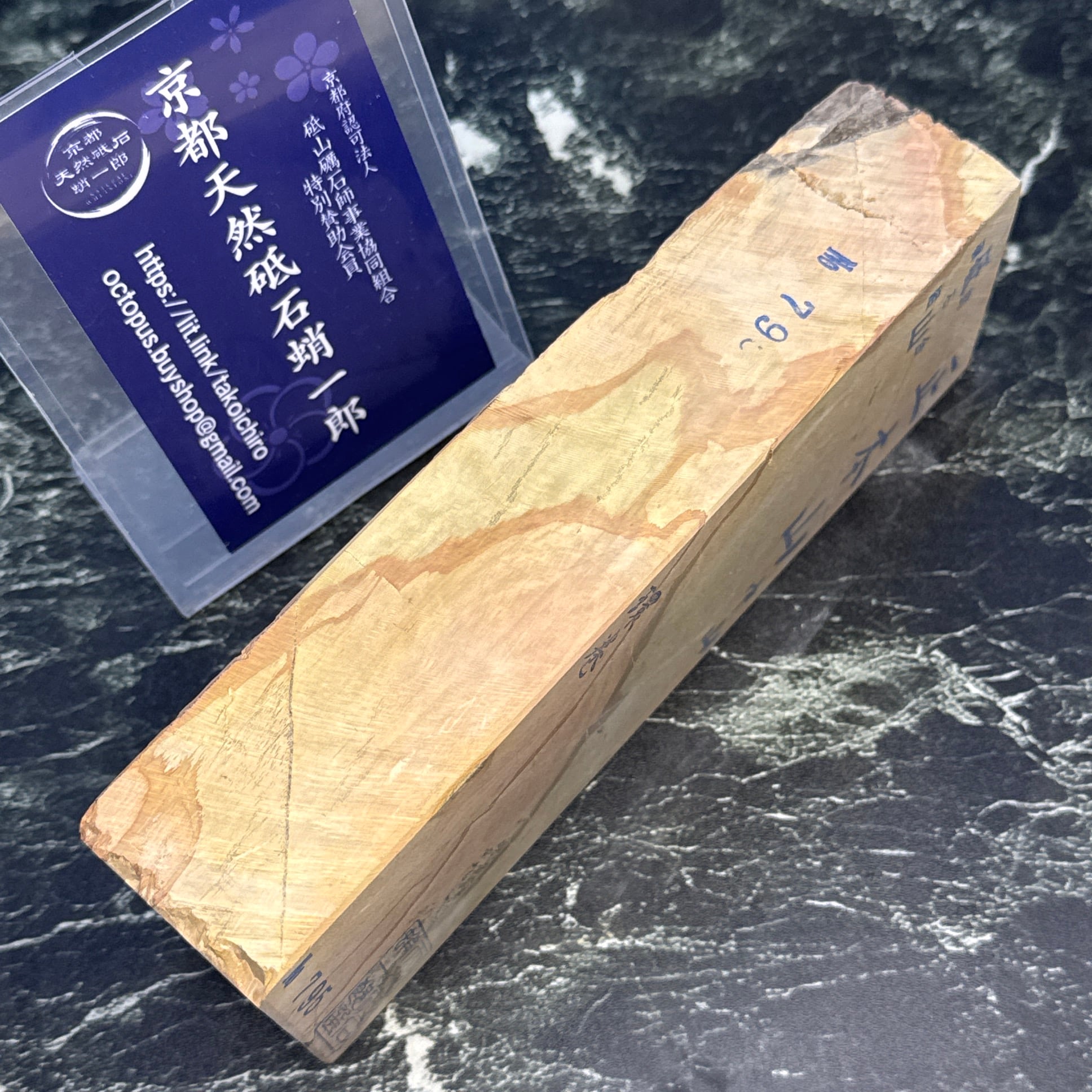 地殻変動の影響から京都のごく一部の地域でのみ産出する粘板岩の仕上げ砥です。