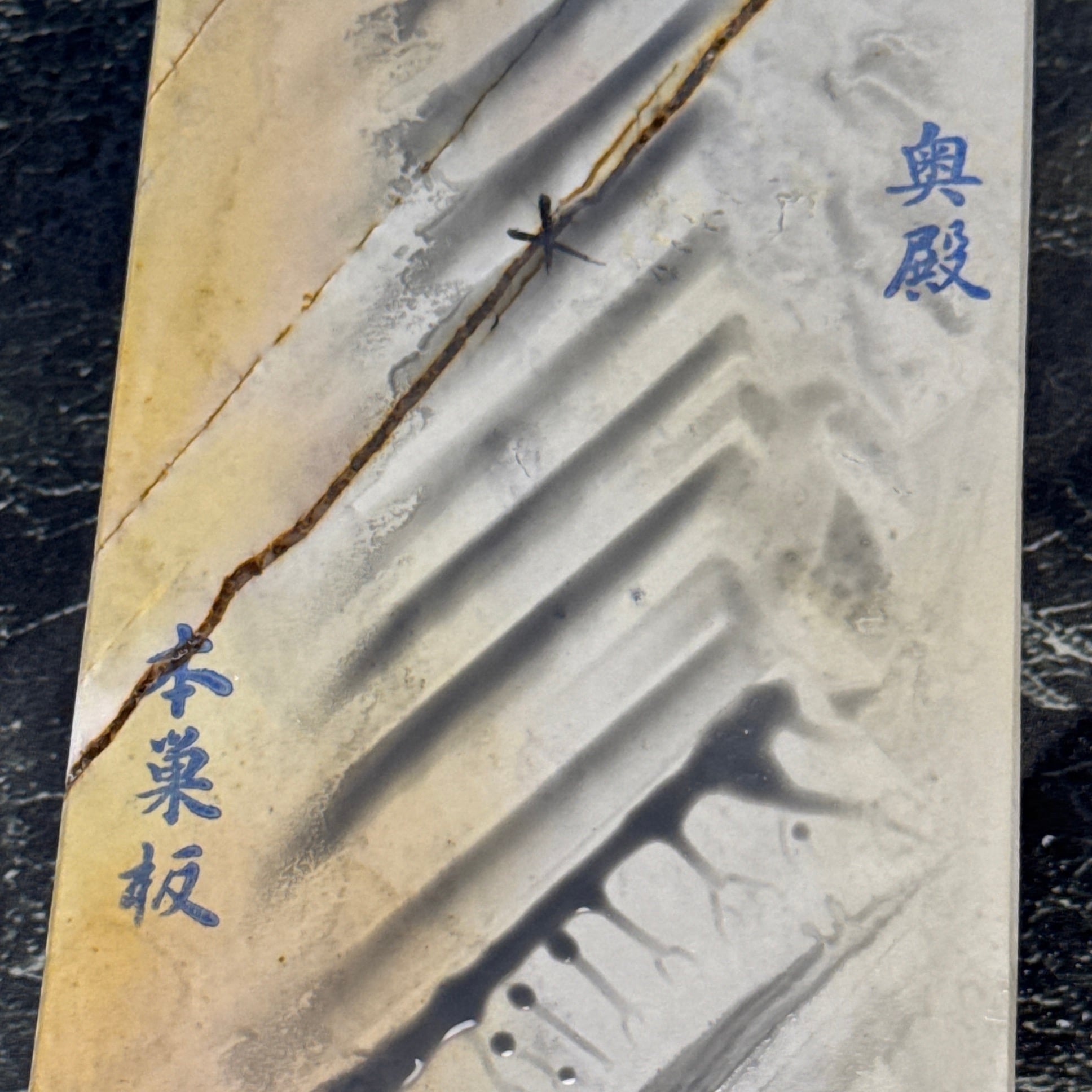 地殻変動の影響から京都のごく一部の地域でのみ産出する粘板岩の仕上げ砥です。