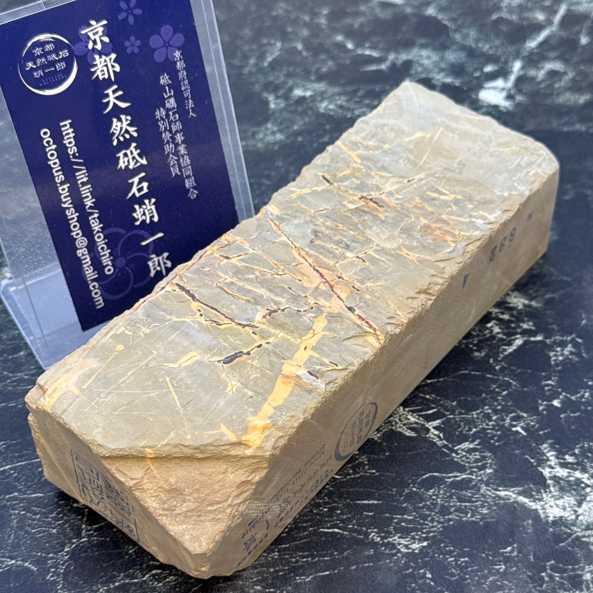 地殻変動の影響から京都のごく一部の地域でのみ産出する粘板岩の仕上げ砥です。